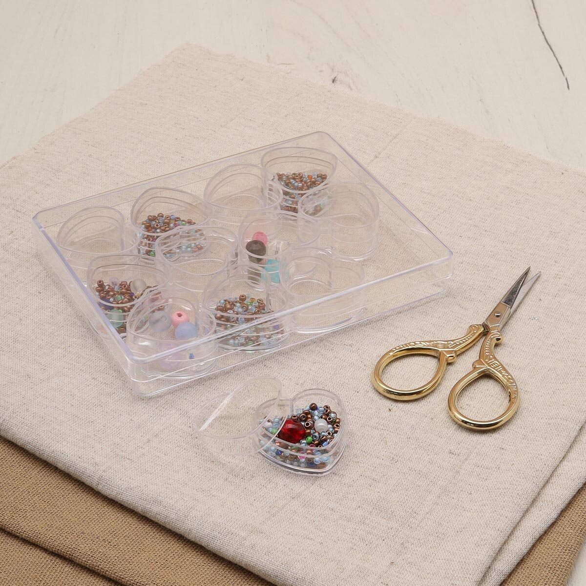 Контейнер для бисера и мелочей с 12 баночками, 12,5*9,5*1,8 см, пластик, Айрис интересное: