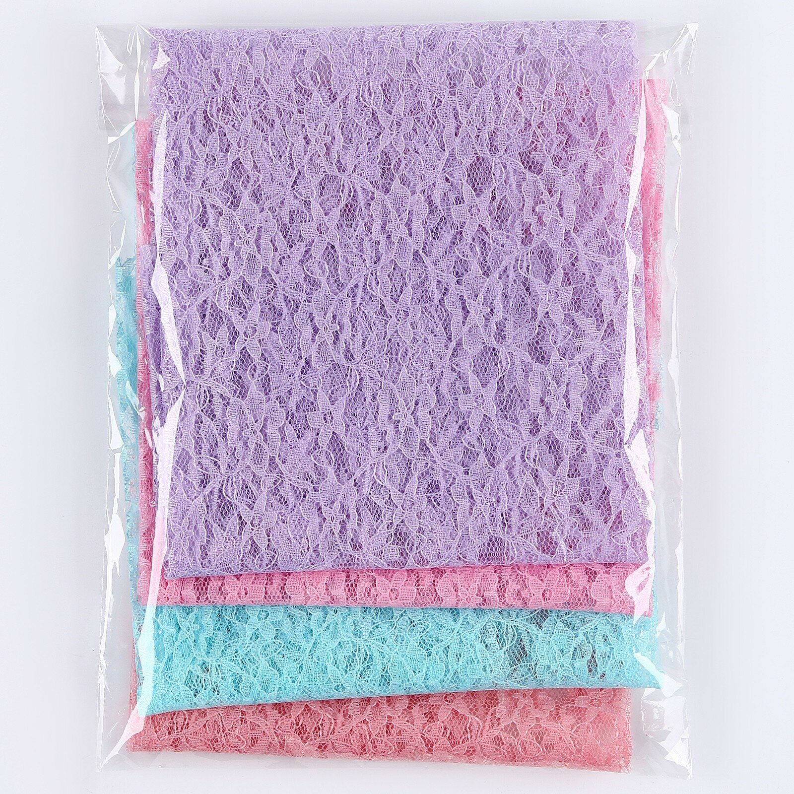 Купить Набор лоскутов для рукоделия, гипюр, 4 шт: розовый, коралл, сиреневый, мятный, 50 × 50 см