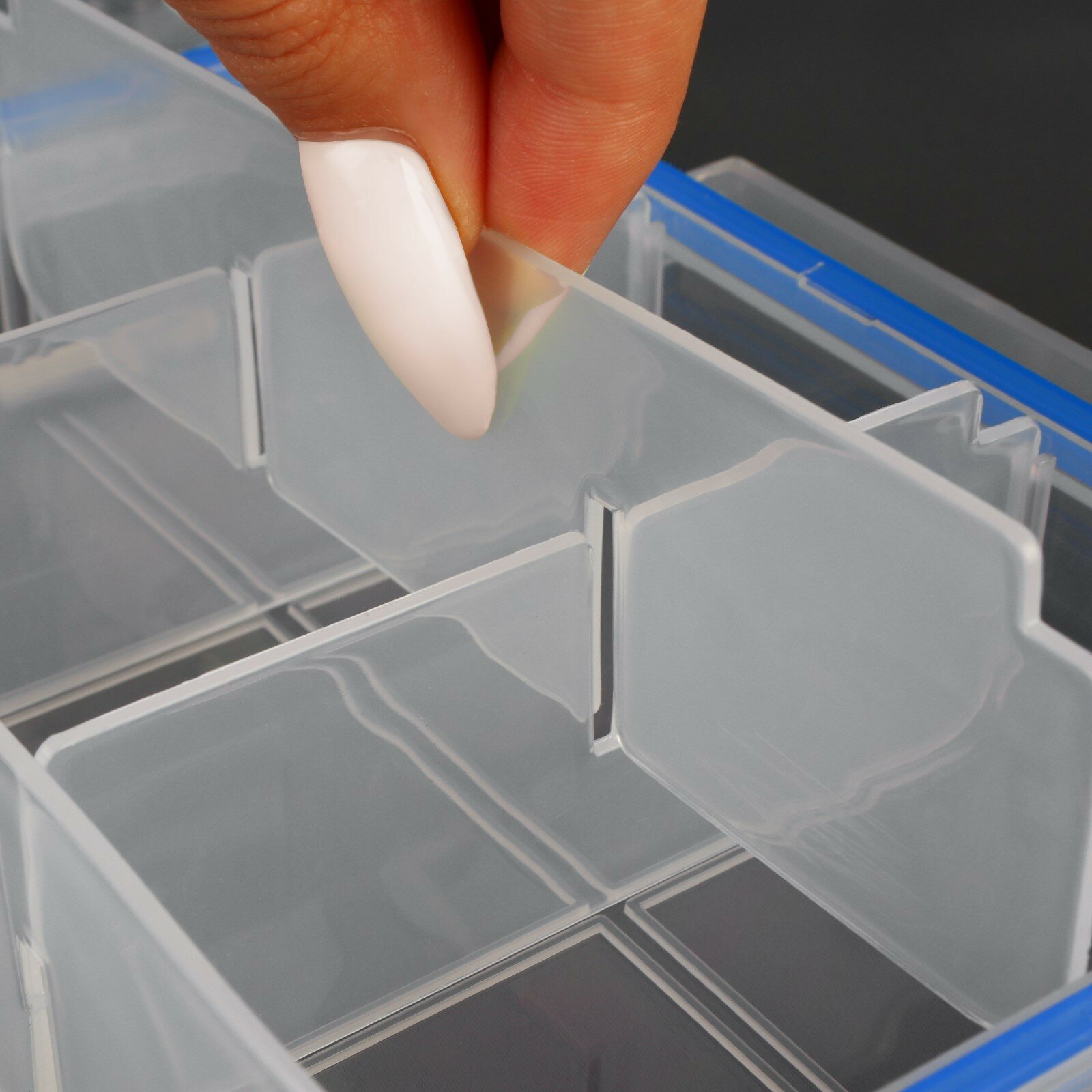 Купить Органайзер для рукоделия, со съёмными ячейками, с подвесом, 15 отделений, 27 × 17 × 4,3 см, цвет прозрачный/синий