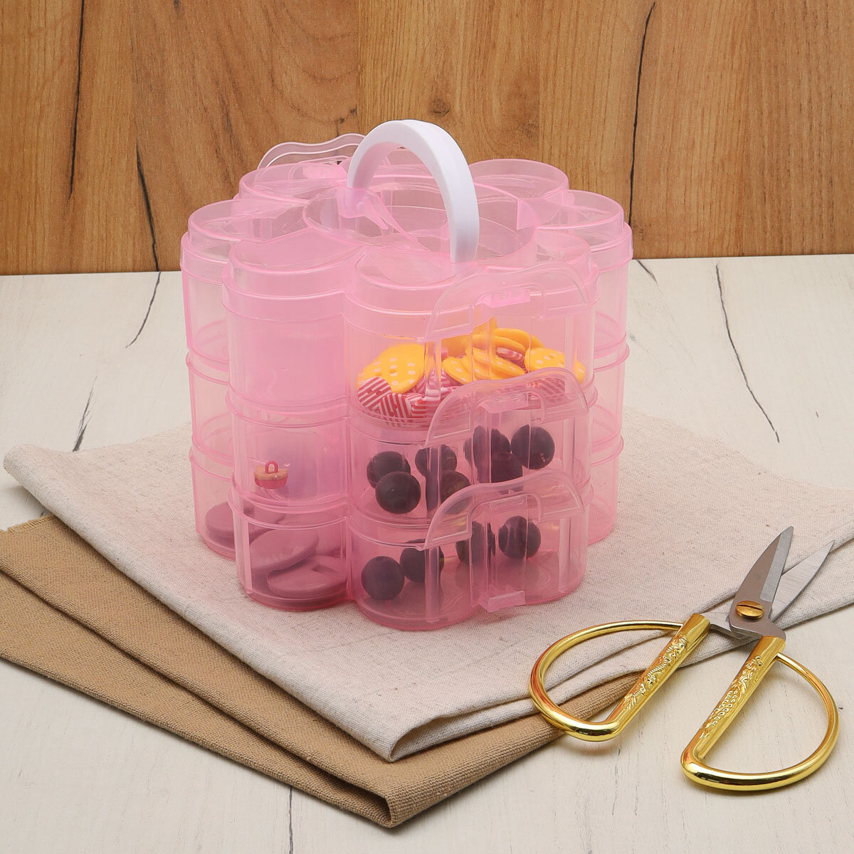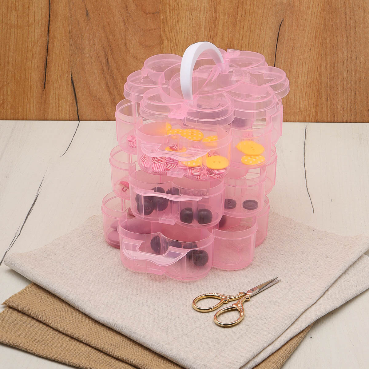 Контейнер для мелочей с отделениями Айрис Цветок 23587, 3-х ярусный, пластик, 15*15*12 см интересное: