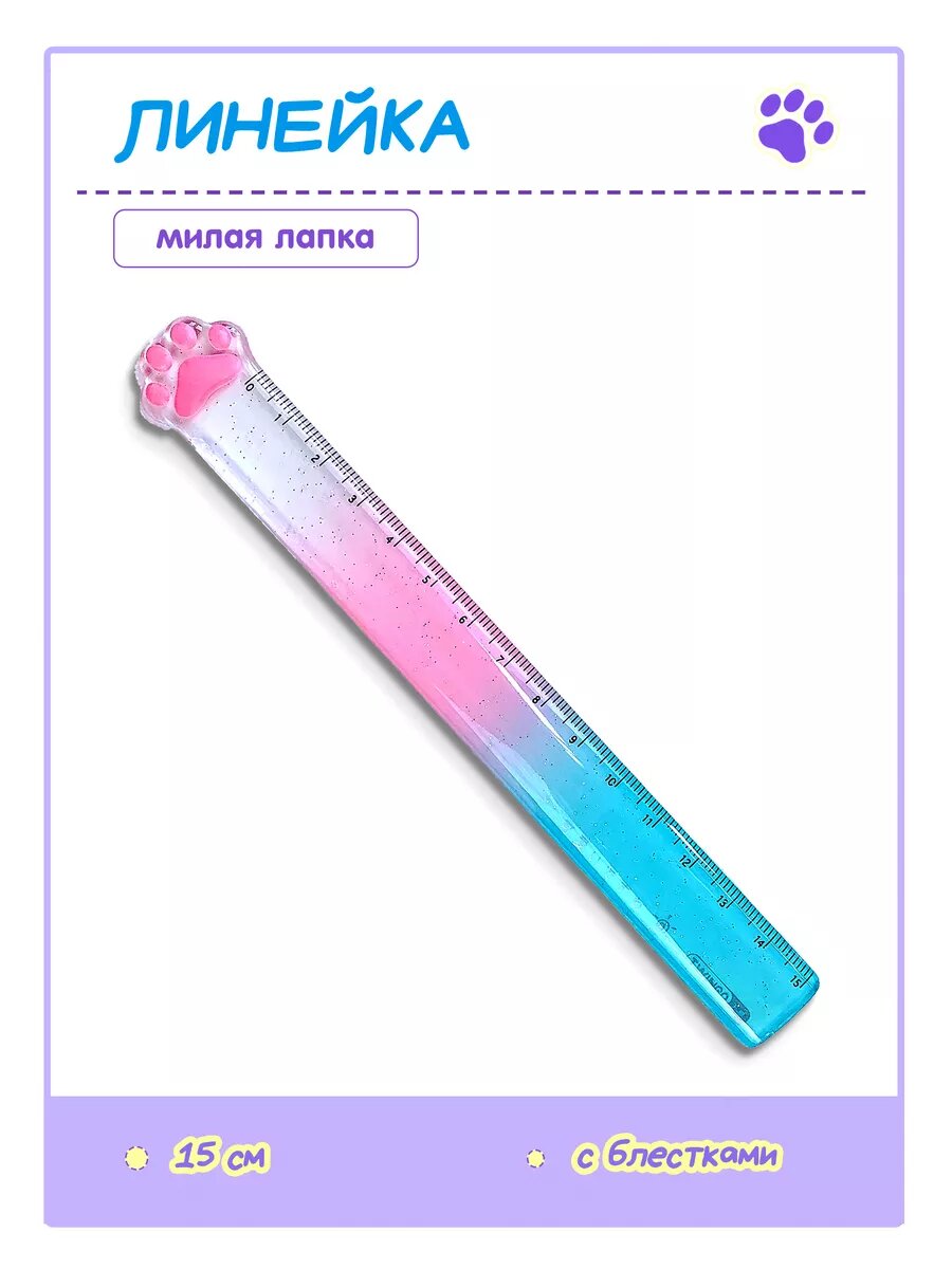 Линейка для школы Сяо Мяо "Кошачья лапка", пластик, розовый, 15см