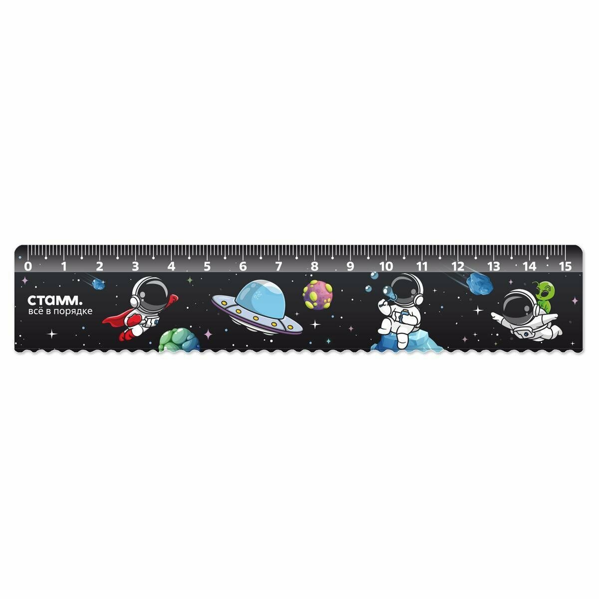 Купить Линейка 15см пластиковая, с волнистым краем "Космонавты" (Стамм)