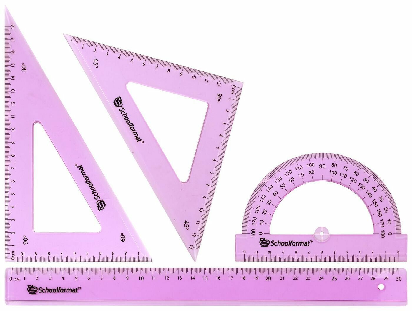 Купить Набор геометрический 4 предмета большой Schoolformat, пластик, тонированный