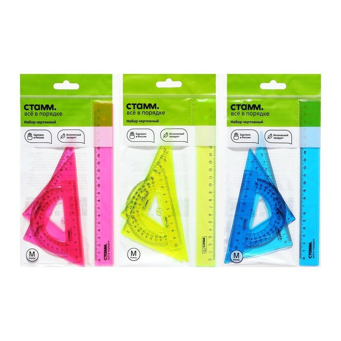 Ниже Вы можете прочитать отзывы на Набор чертежный СТАММ, размер M (линейка 20см, 2 треугольника, транспортир), прозрачный, неоновые цвета, ассорти, европодвес, ознакомится с подробными характеристиками, посмотреть интересные обзоры и фотографии на Набор чертежный СТАММ, размер M (линейка 20см, 2 треугольника, транспортир), прозрачный, неоновые цвета, ассорти, европодвес.
