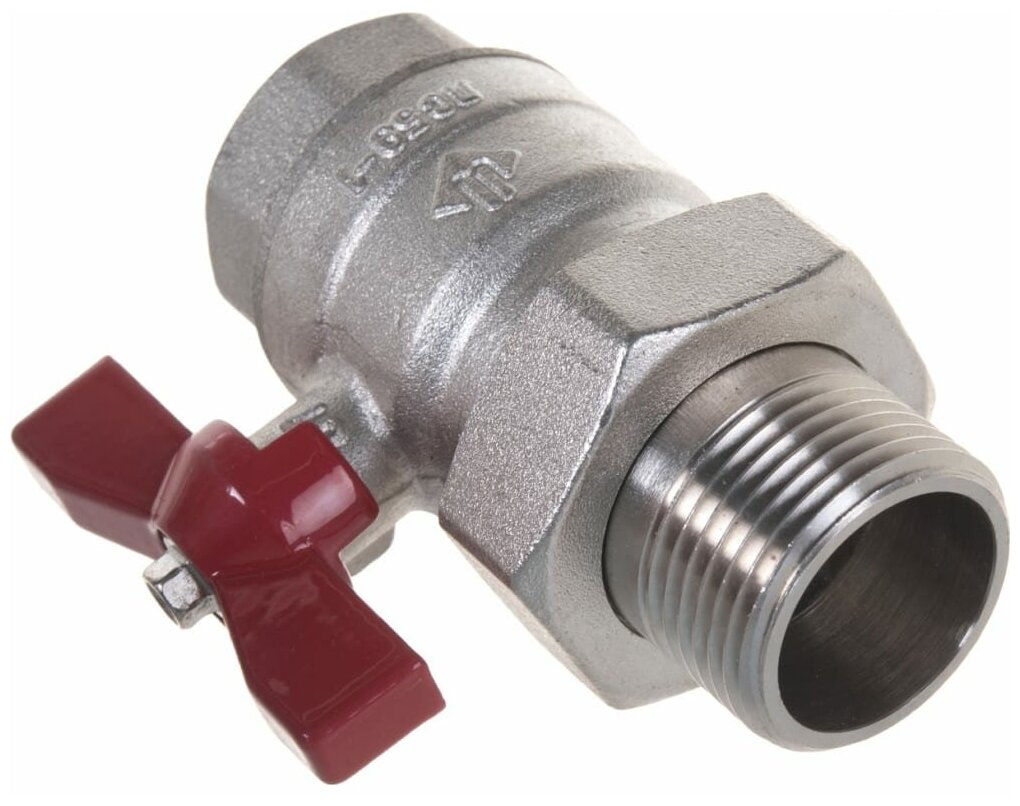 Кран ЗУБР шаровой 1″ полнопроходной с накидной гайкой ″мама-папа″, бабочка, никелированная латунь