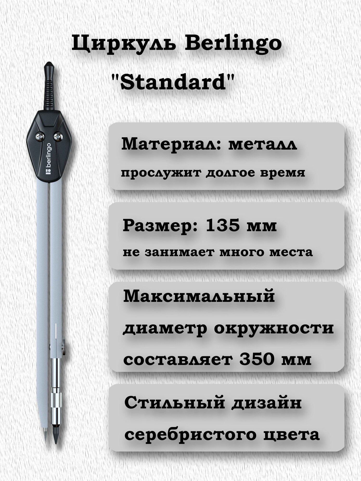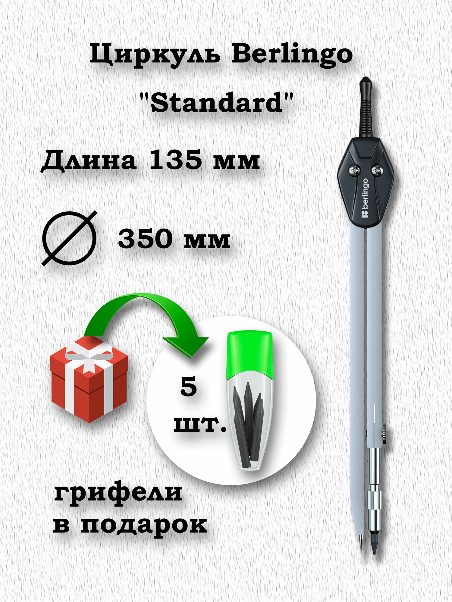 Циркуль Berlingo "Standard" металлический, 135мм, плюс набор грифелей 5 шт. интересное: