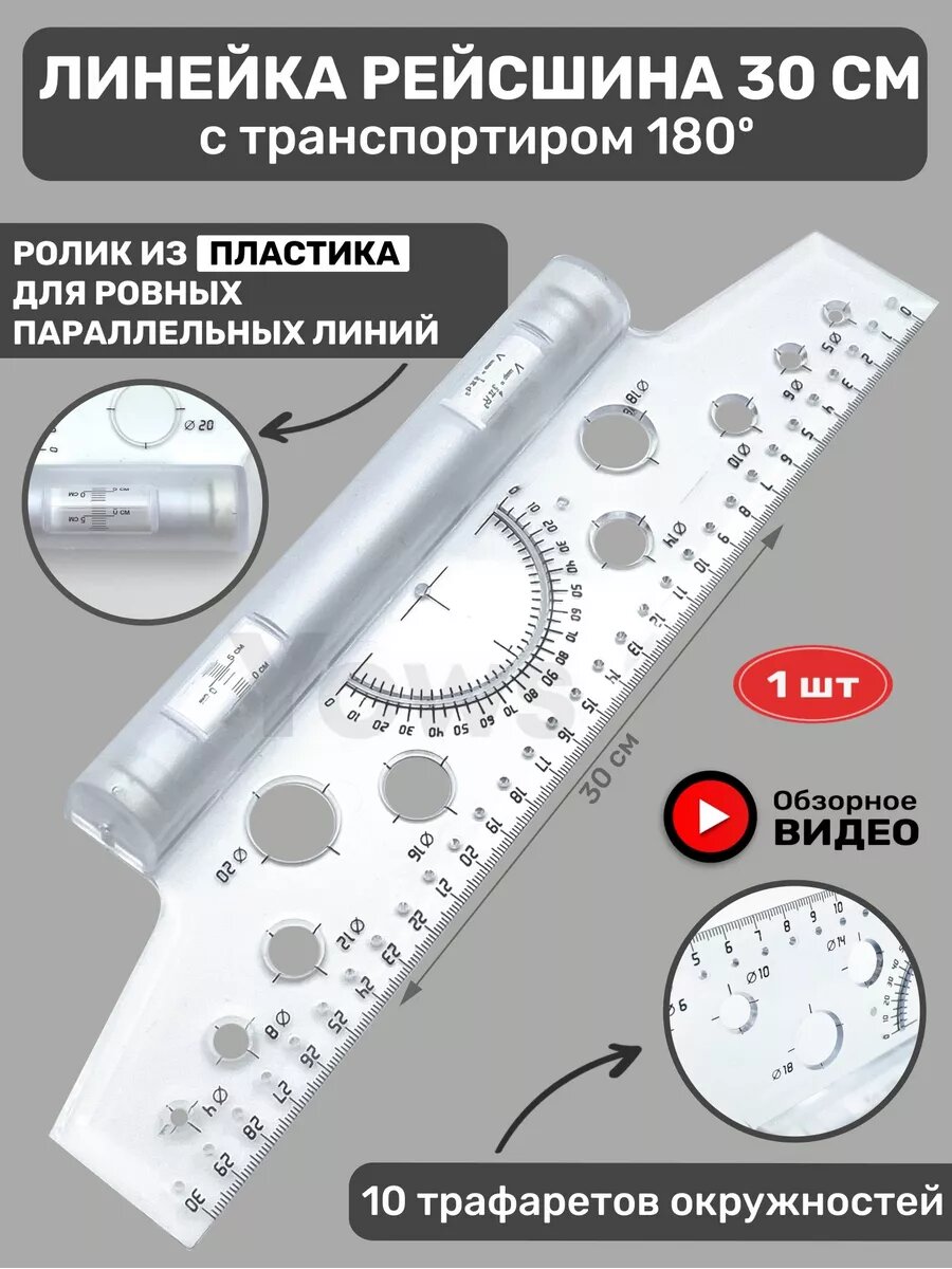 Рейсшина-транспортир, 30см, с пластиковым роликом интересное: