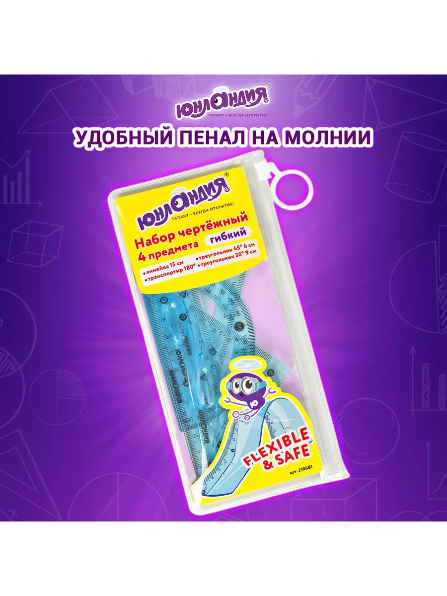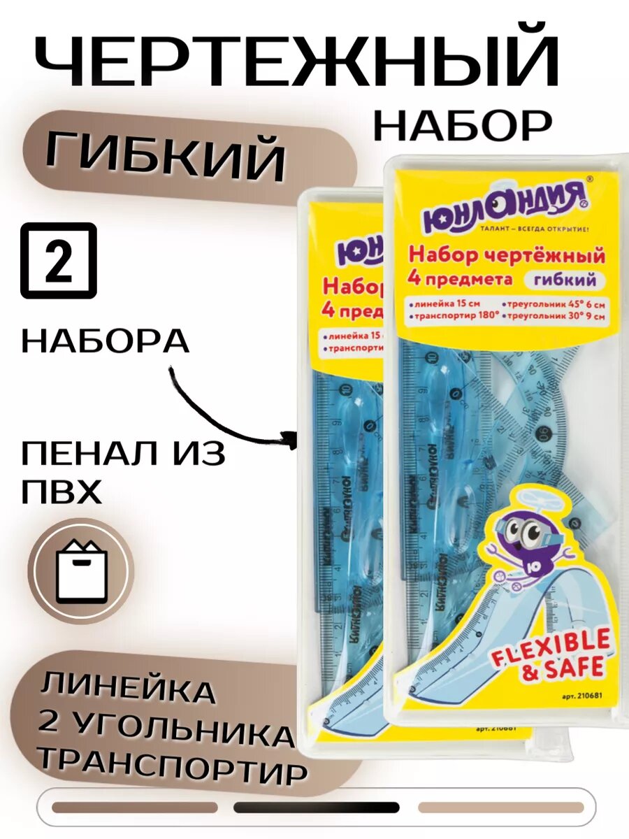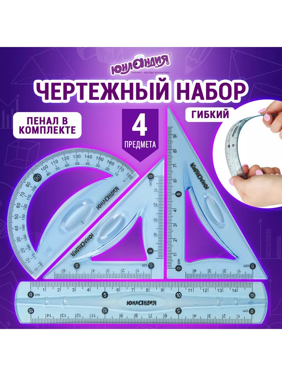 Набор чертежный, гибкий "Юнландия", 4 предмета, пенал, 2 штуки интересное: