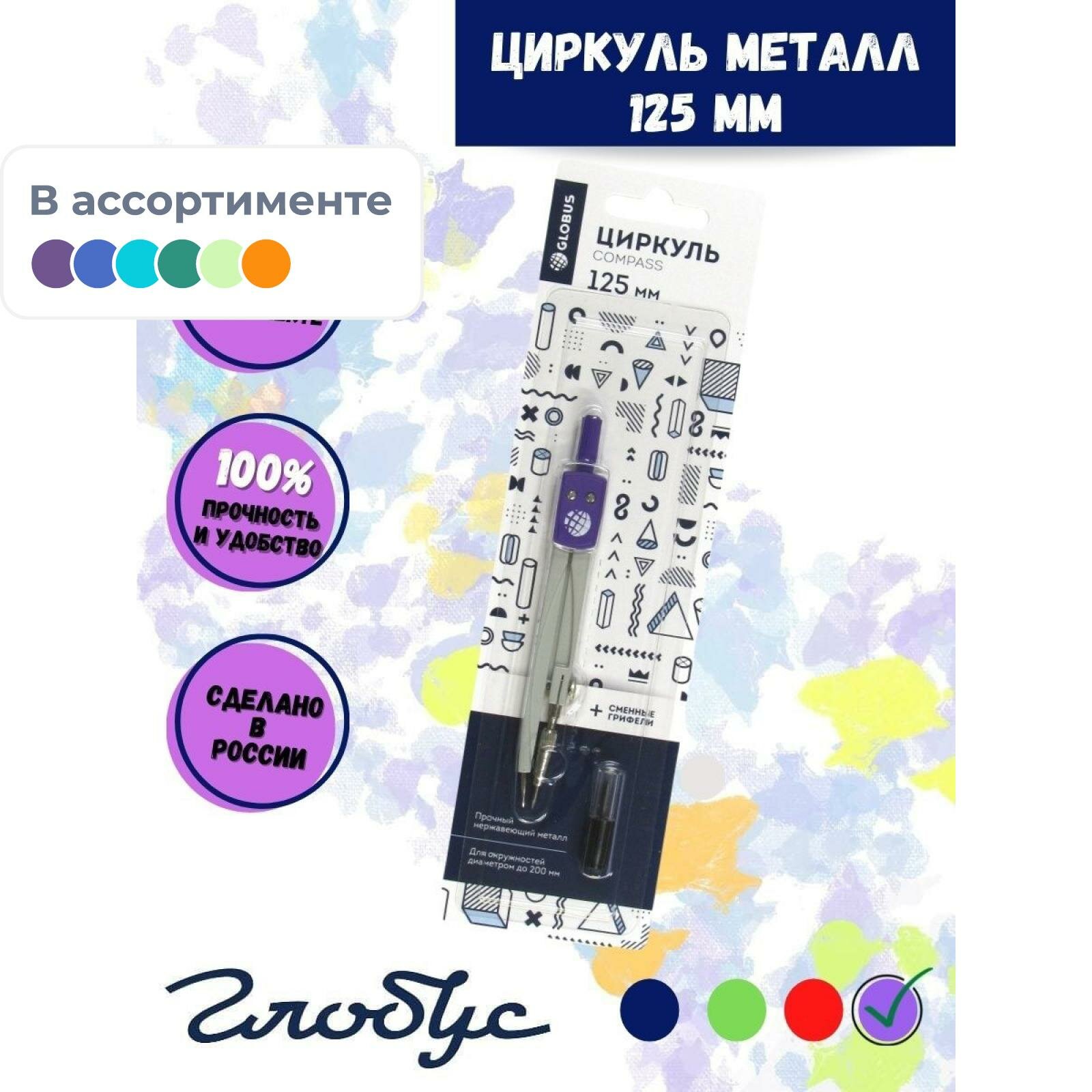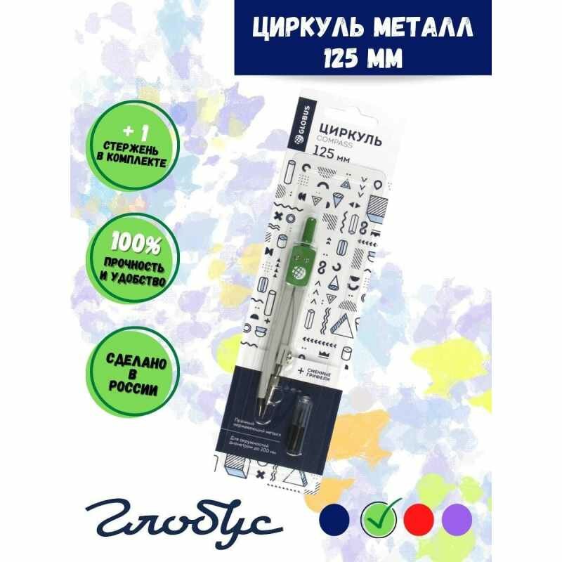 Купить Готовальня Глобус ЦЧП-40Б School циркуль 125мм, мет, зап. грифель, в асс, блист