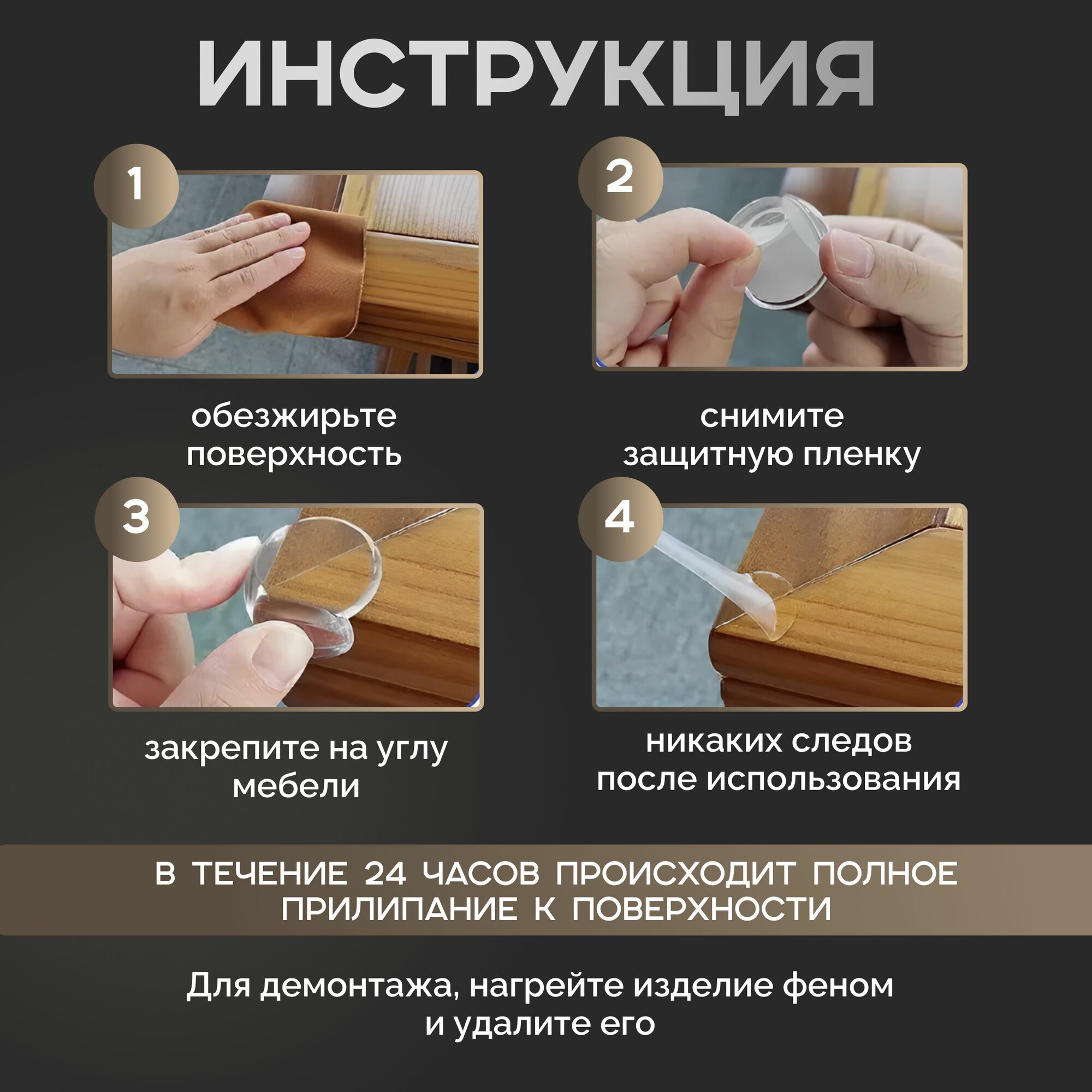 Защитные уголки на мебель, силиконовые накладки на стол 10 шт, цвет прозрачный интересное: