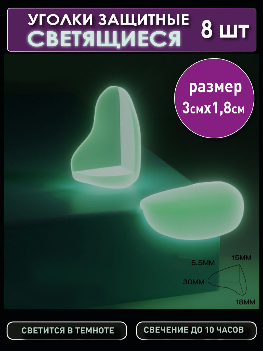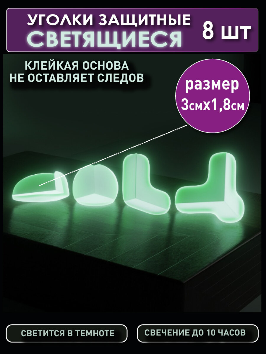 OlLena / Светящиеся в темноте защитные накладки для дома "Уголок" 8 шт, фотолюминесцентные силиконовые защитные уголки