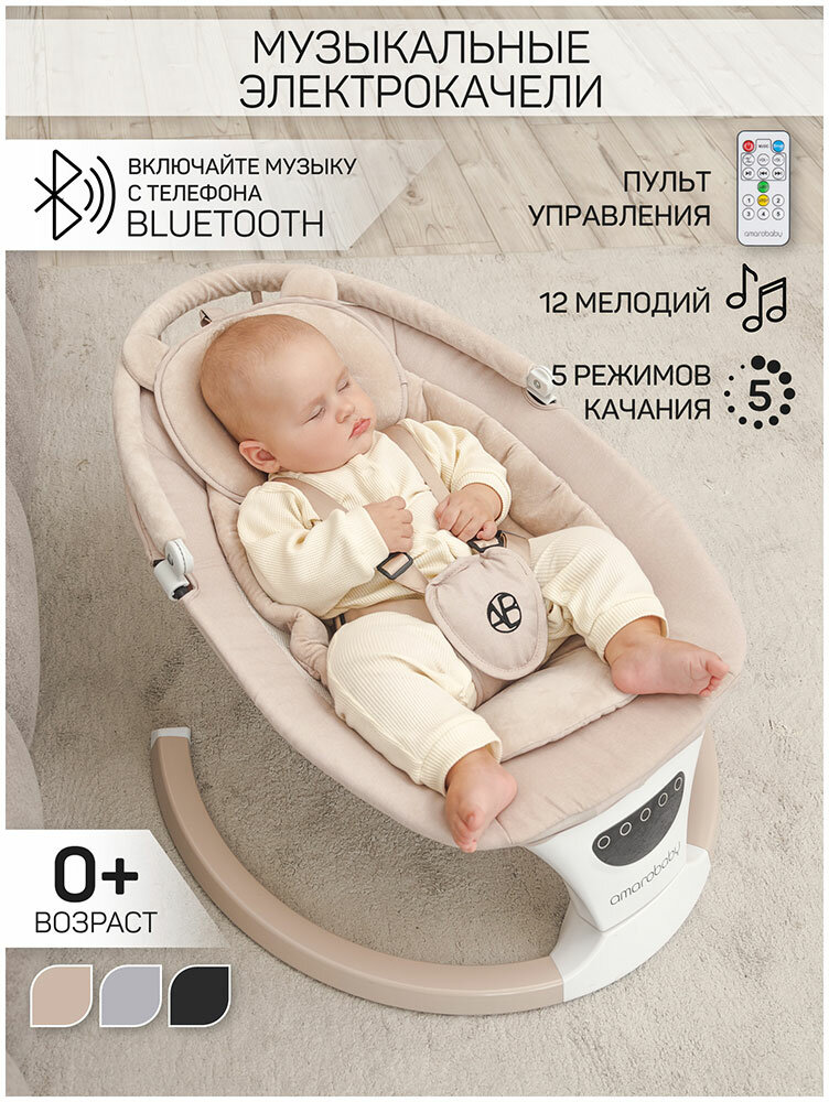 Электронные качели детские Amarobaby Teddy swing, бежевый интересное: