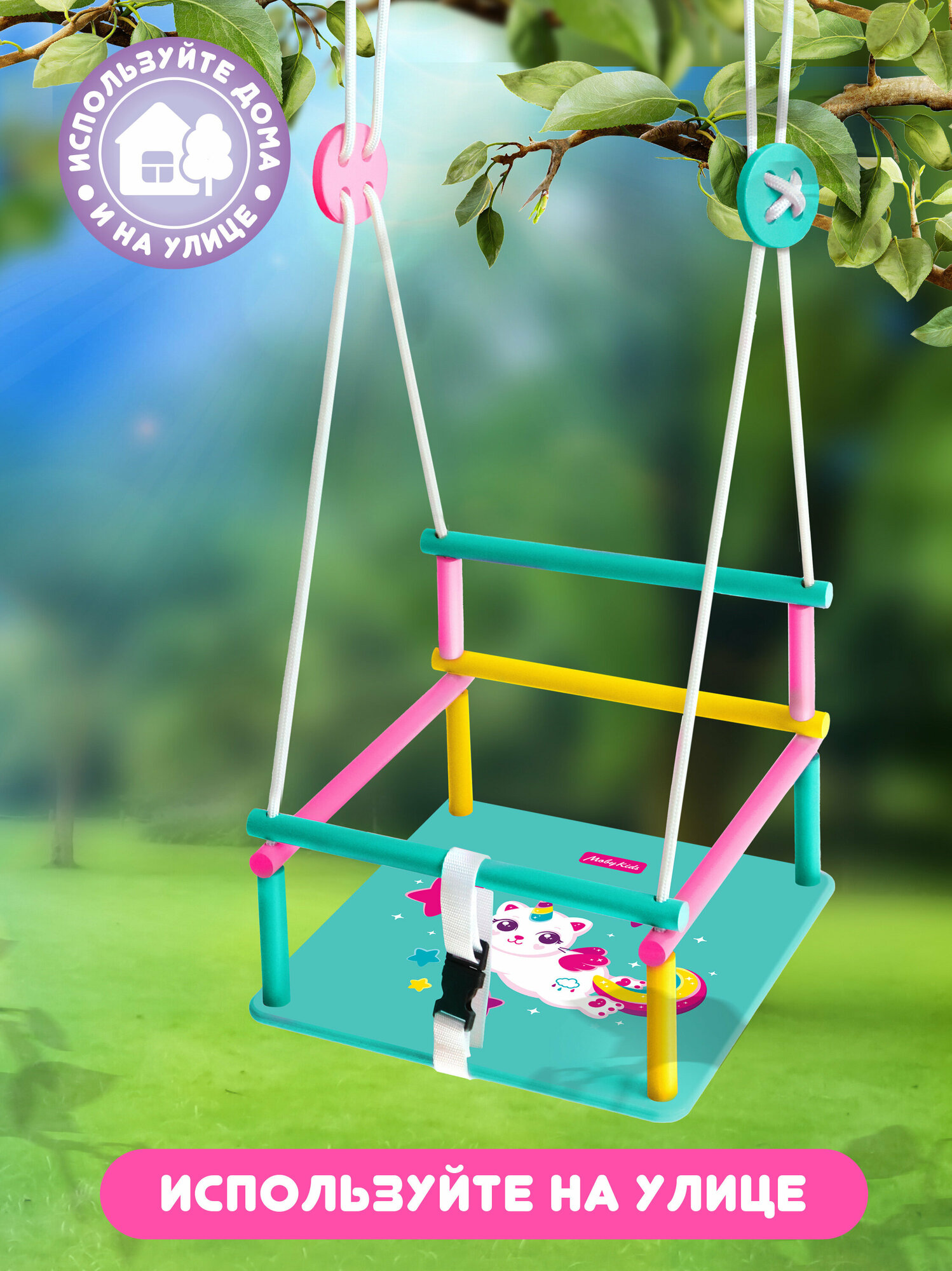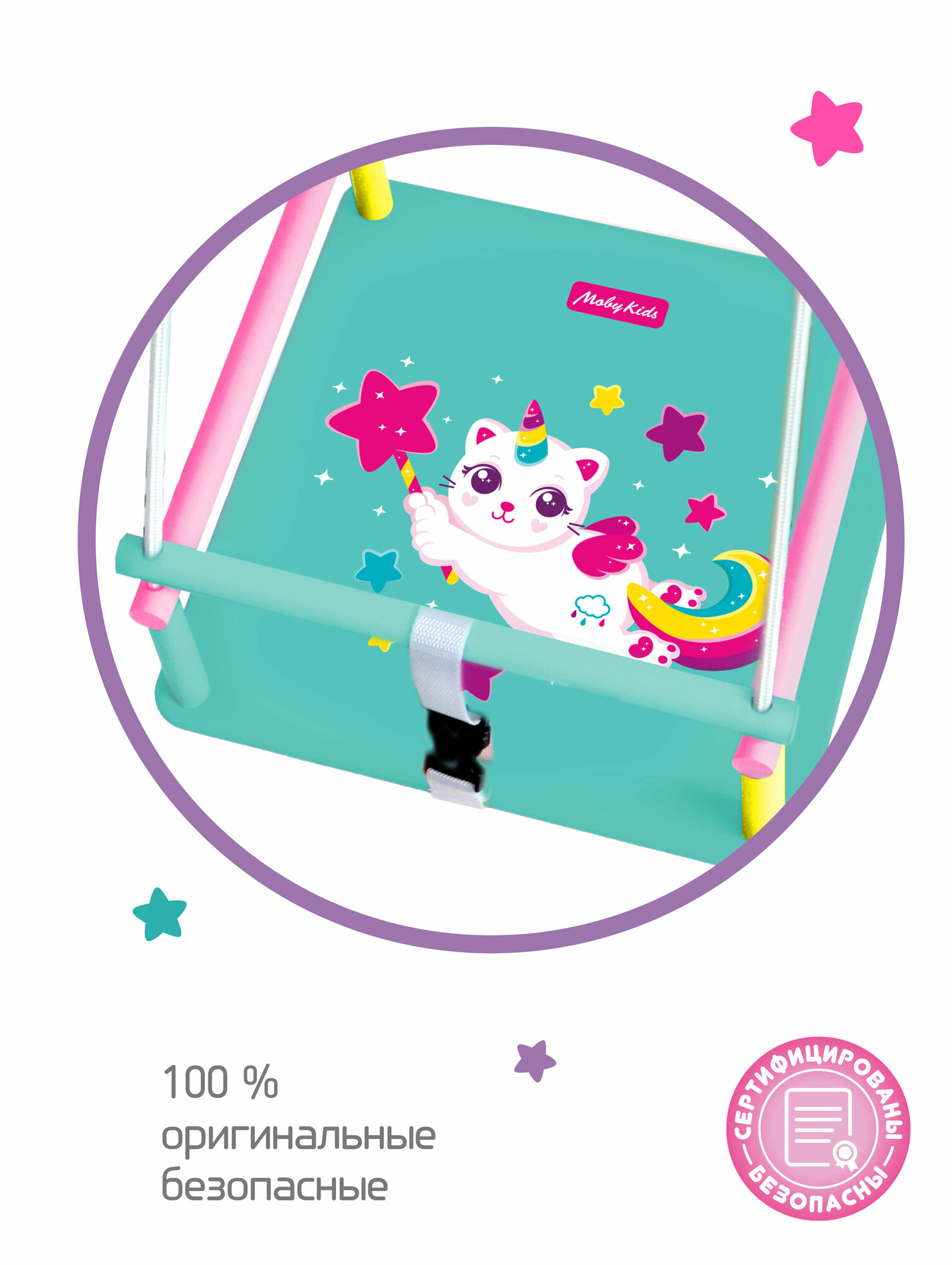Качели детские подвесные деревянные с рисунком Moby Kids "Комета" Котик, максимальная нагрузка 35 кг интересное: