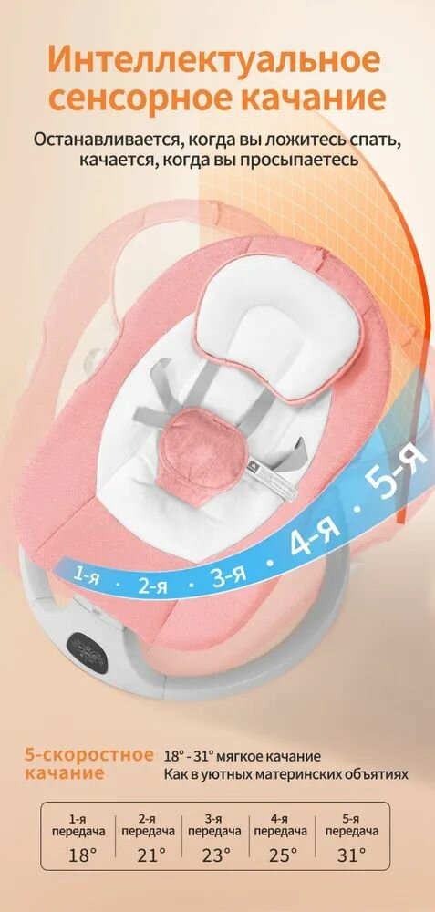 Детские электрические качели / глубокое кресло с функцией электрического качания + подарочная игрушка, розовый