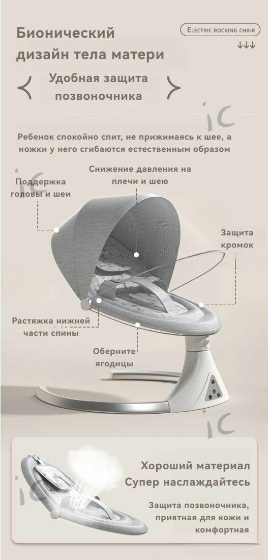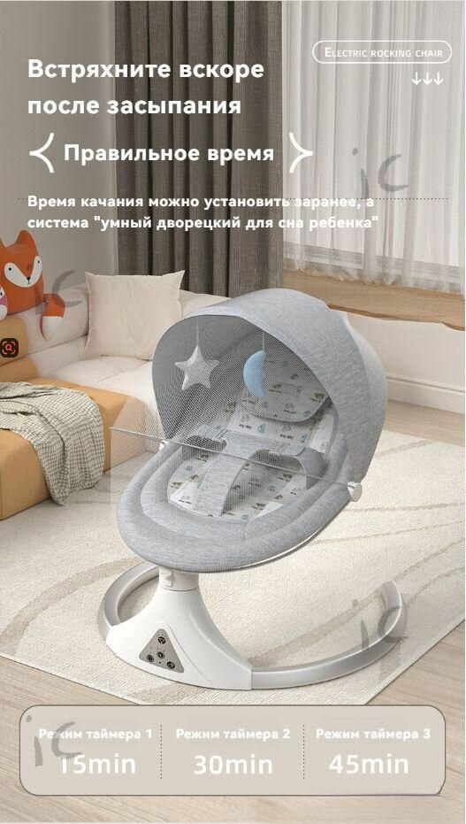 СохранитьУмные электрические качели для новорожденных, музыка по Bluetooth, подарочные игрушки серый интересное:
