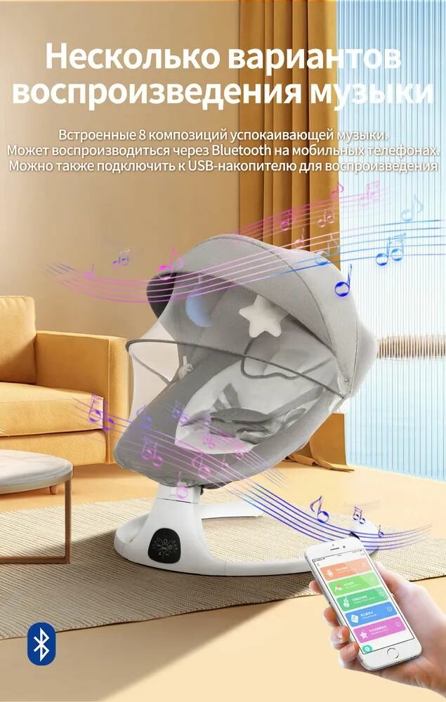 СохранитьЭлектрокачели для новорожденного / Музыкальный эффект Bluetooth интересное: