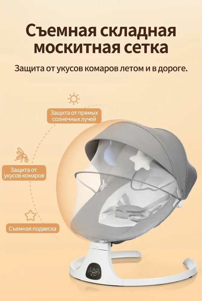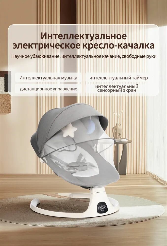 Электрокачели для новорожденных Aelita Baby Swing Pro Max / шезлонг с электронной функцией укачивания + игрушка в Подарок, светло-серый