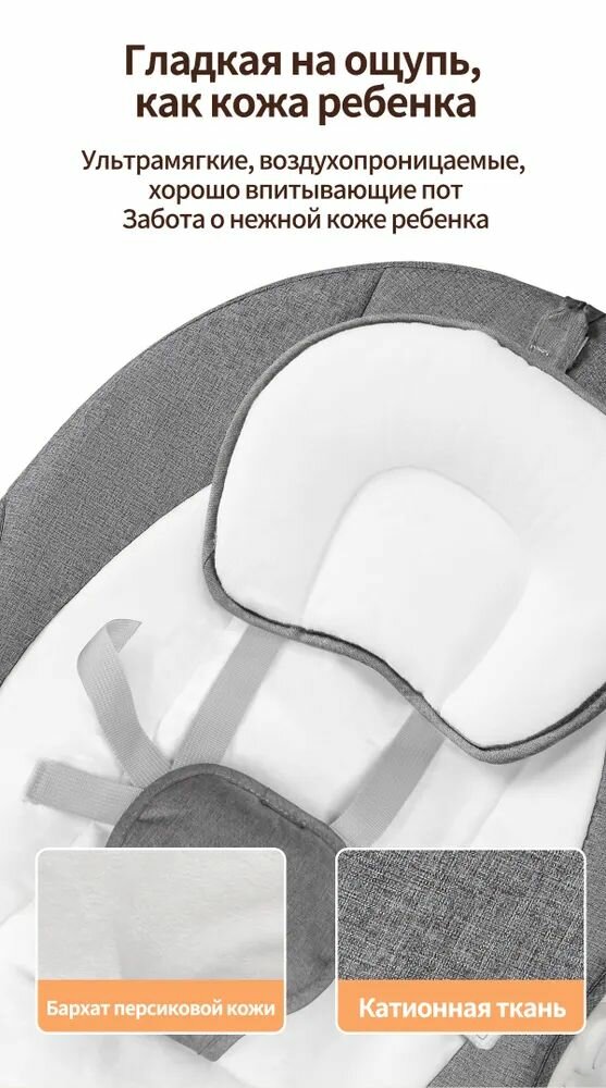 Электрокачели, для новорожденных, 12 мелодий, пульт, съемный чехол, серый