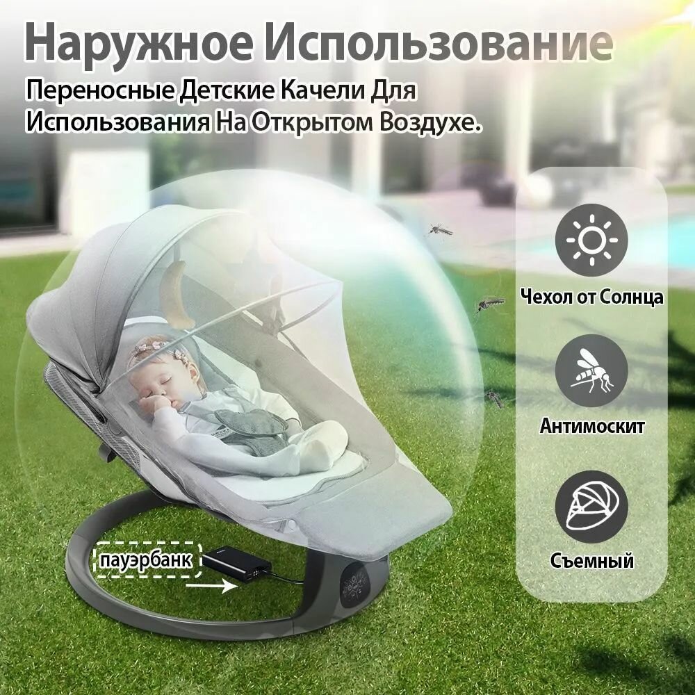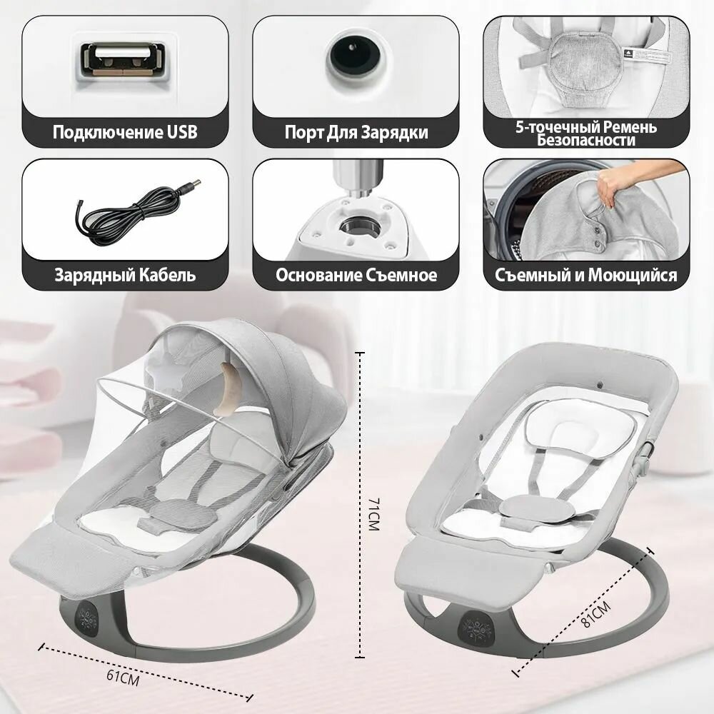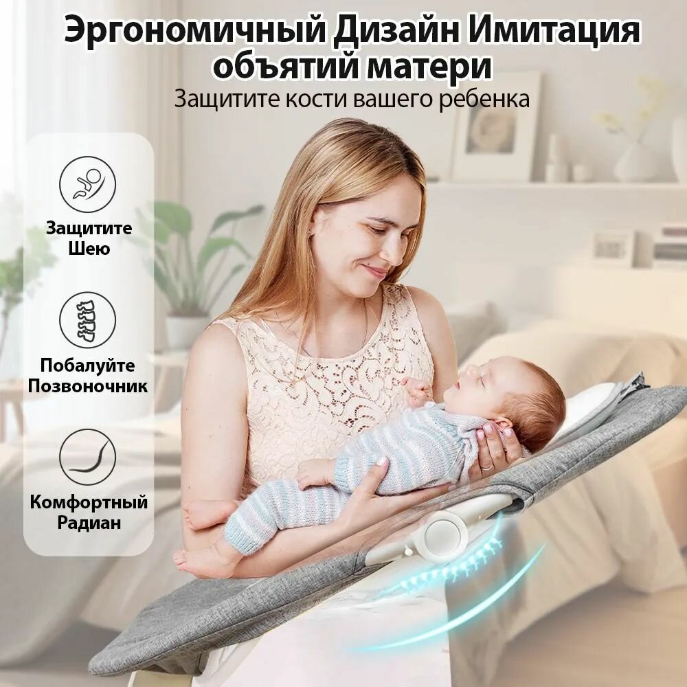 Электрокачели для новорожденного, шезлонг детский с электронной функцией качания + игрушка в Подарок