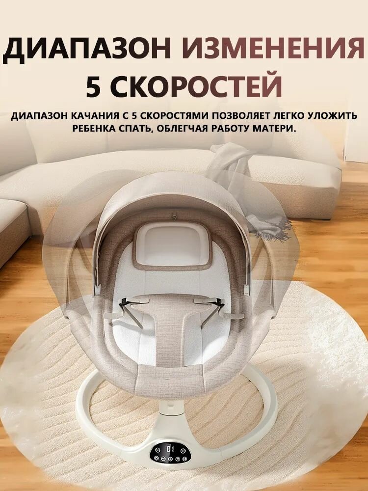 Электрокачели, для новорожденных, управление через пульт, 5 режимов укачивания