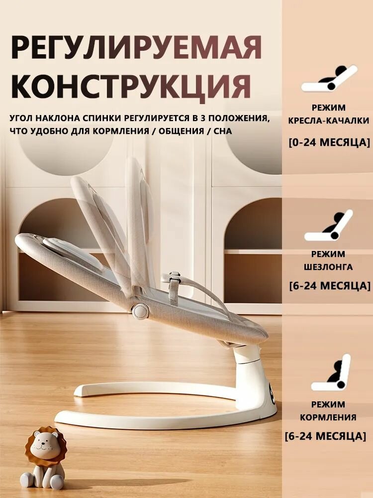 Электрокачели для новорожденных Aelita Baby Swing Pro Max / шезлонг с электронной функцией укачивания + игрушка в Подарок, светло-серый