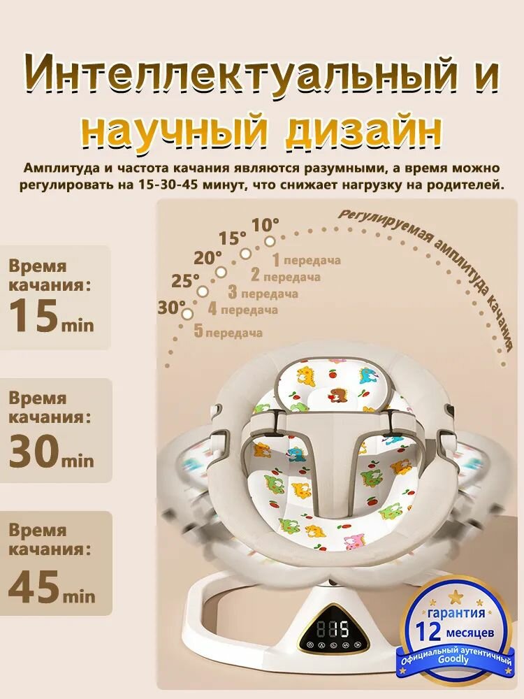 Электрокачели для новорожденного, шезлонг детский с электронной функцией качания + игрушка в Подарок