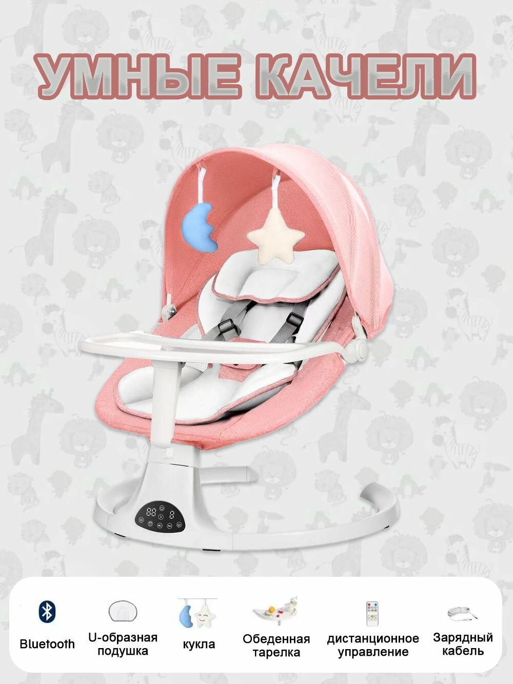 СохранитьДетские электрические качели / глубокое кресло с функцией электрического качания + подарочная игрушка, розовый интересное: