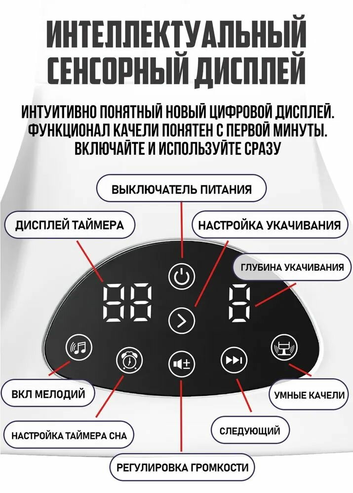 Электрокачели, для новорожденных, управление через пульт, 5 режимов укачивания