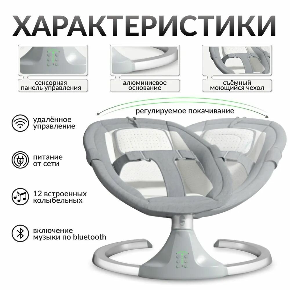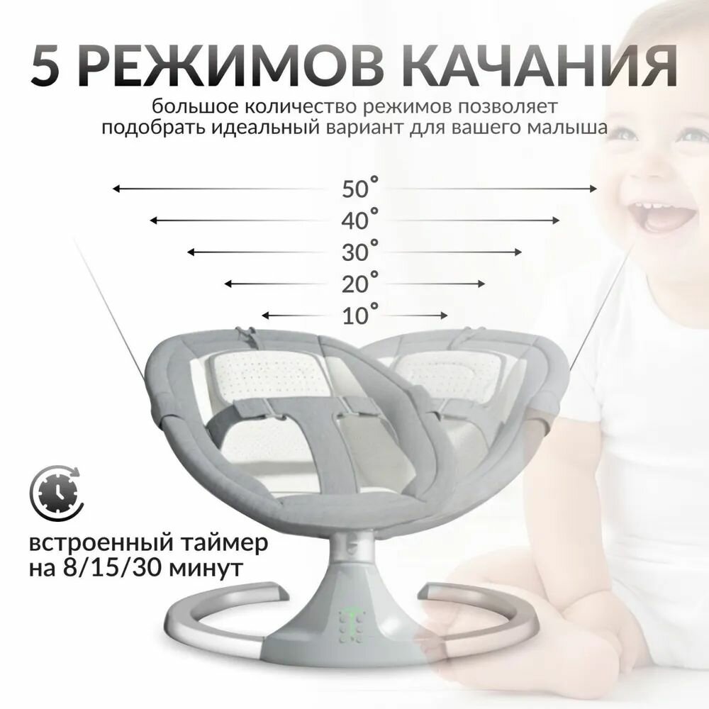 Электрокачели для новорожденных Aelita Baby Swing Pro Max / шезлонг с электронной функцией укачивания + игрушка в Подарок, светло-серый