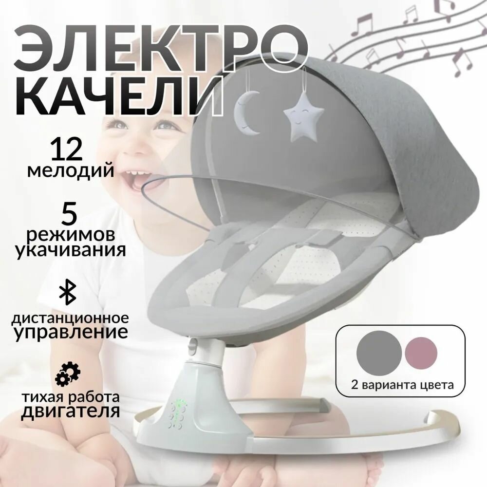 Электрокачели для новорожденного, шезлонг детский с электронной функцией качания + игрушка в Подарок