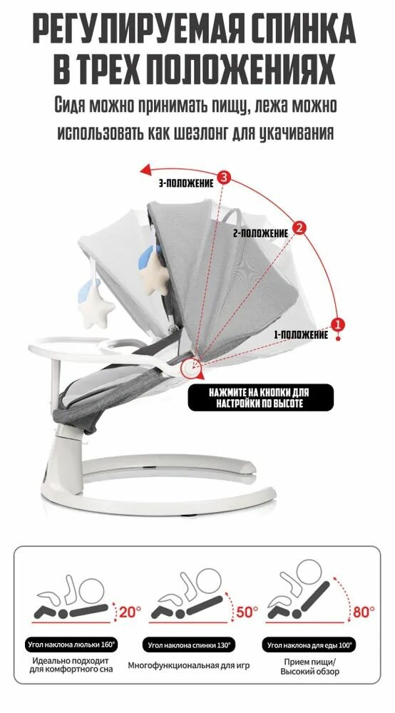 Электрокачели для новорожденных Aelita Baby Swing Pro Max / шезлонг с электронной функцией укачивания + игрушка в Подарок, светло-серый