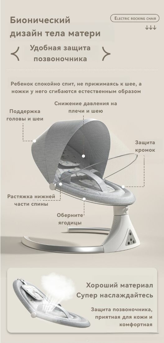 Электрокачели для новорожденных Aelita Baby Swing Pro Max / шезлонг с электронной функцией укачивания + игрушка в Подарок, светло-серый