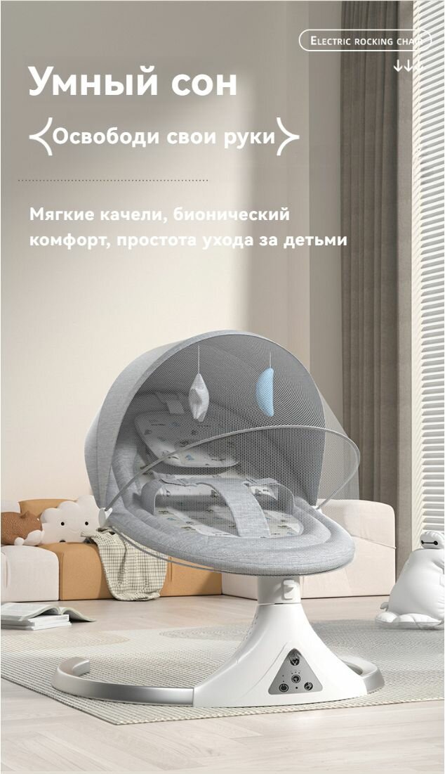 Умные электрические качели для новорожденных, музыка по Bluetooth, подарочные игрушки серый