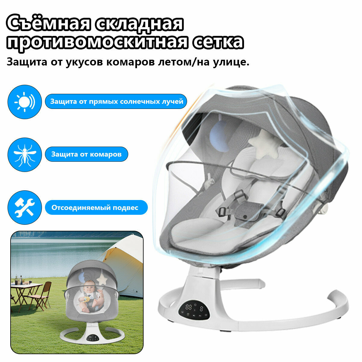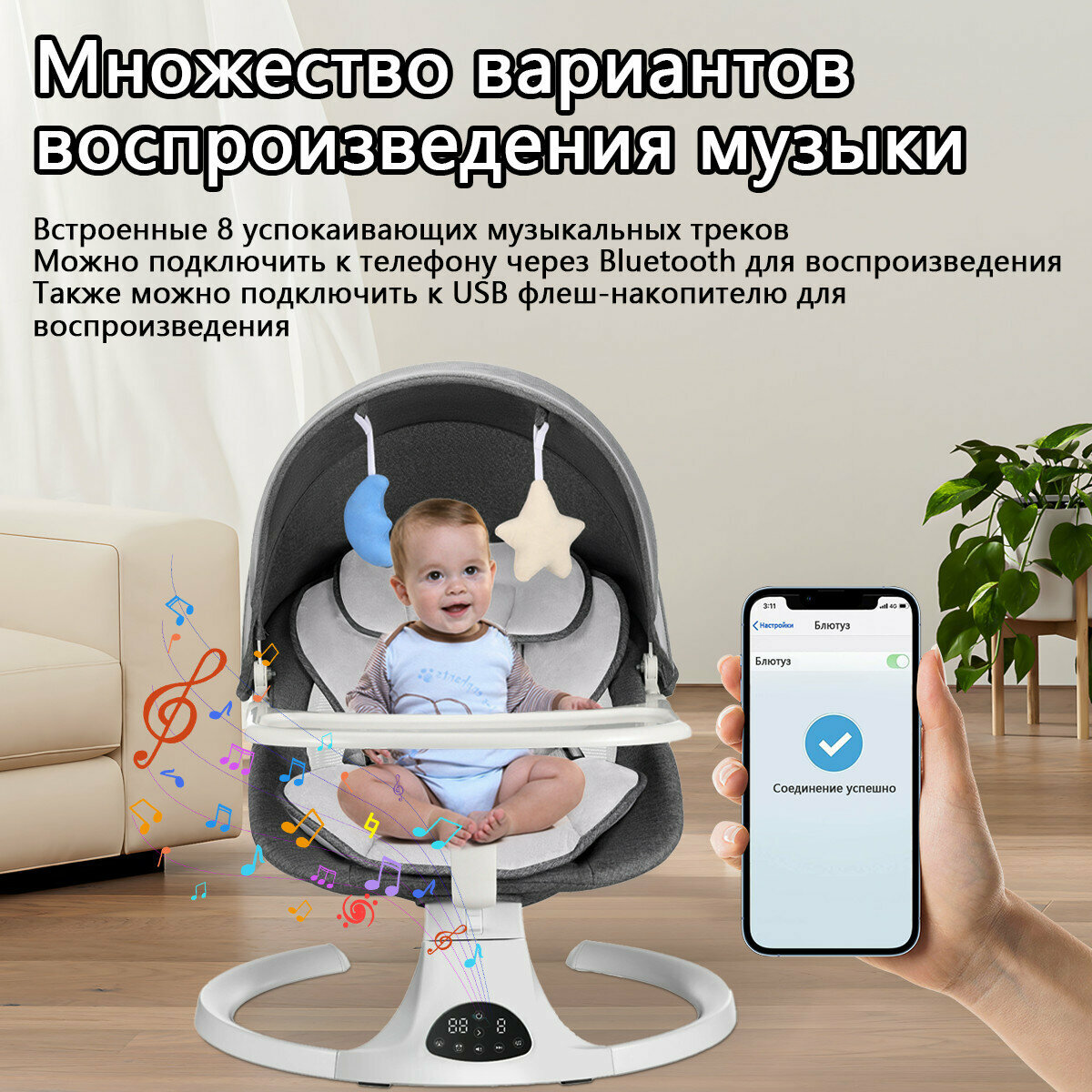 Электрокачели для новорожденного до 12 кг DEAREST, с поворотным блоком, от 0-36 месяцев, серый. интересное:
