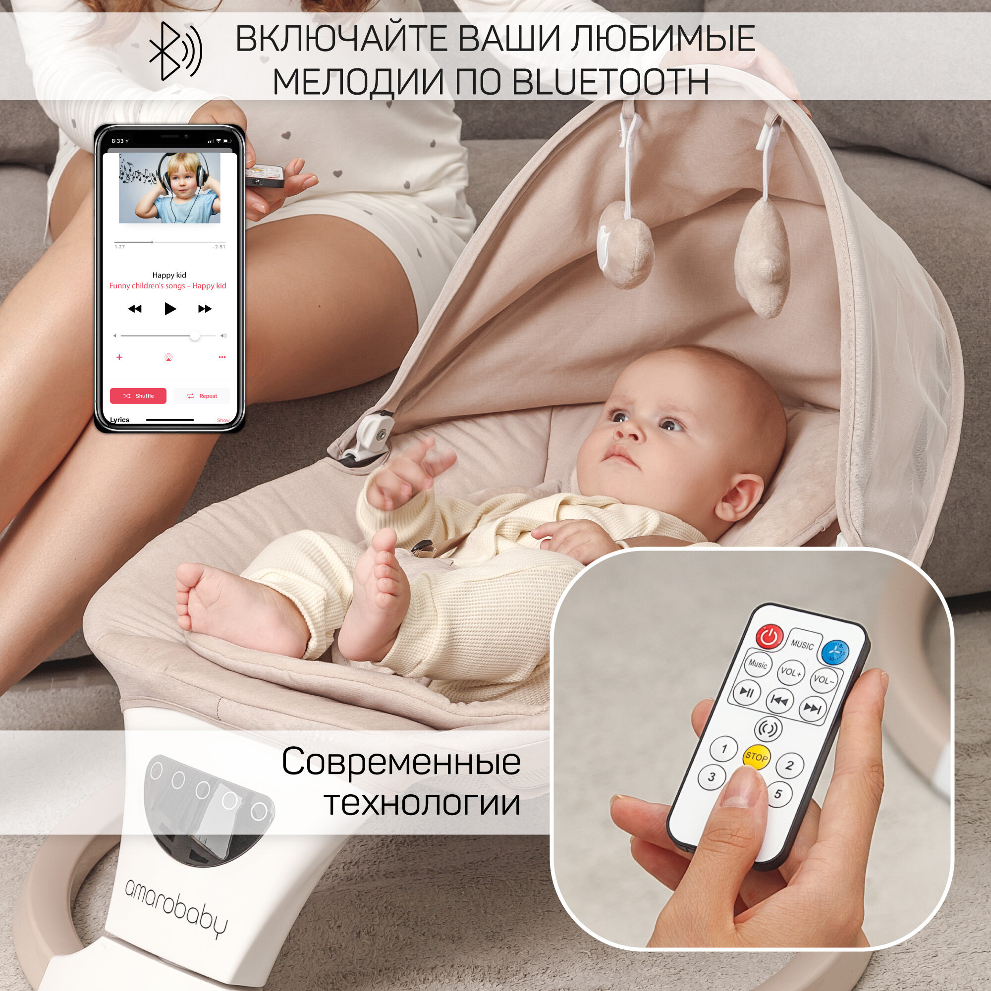 Качели электронные детские Amarobaby Teddy swing, бежевый интересное: