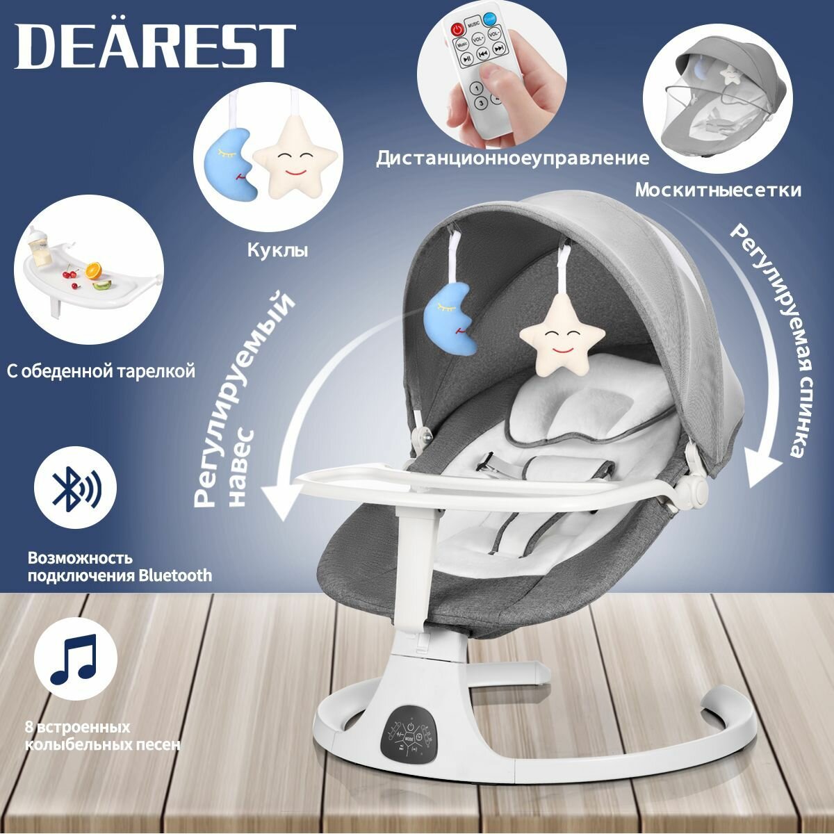 Етское кресло-качалка с Bluetooth, 2 игрушками, 10 мелодиями, 3 уровнями качания и таймером – лучший подарок для малыша интересное: