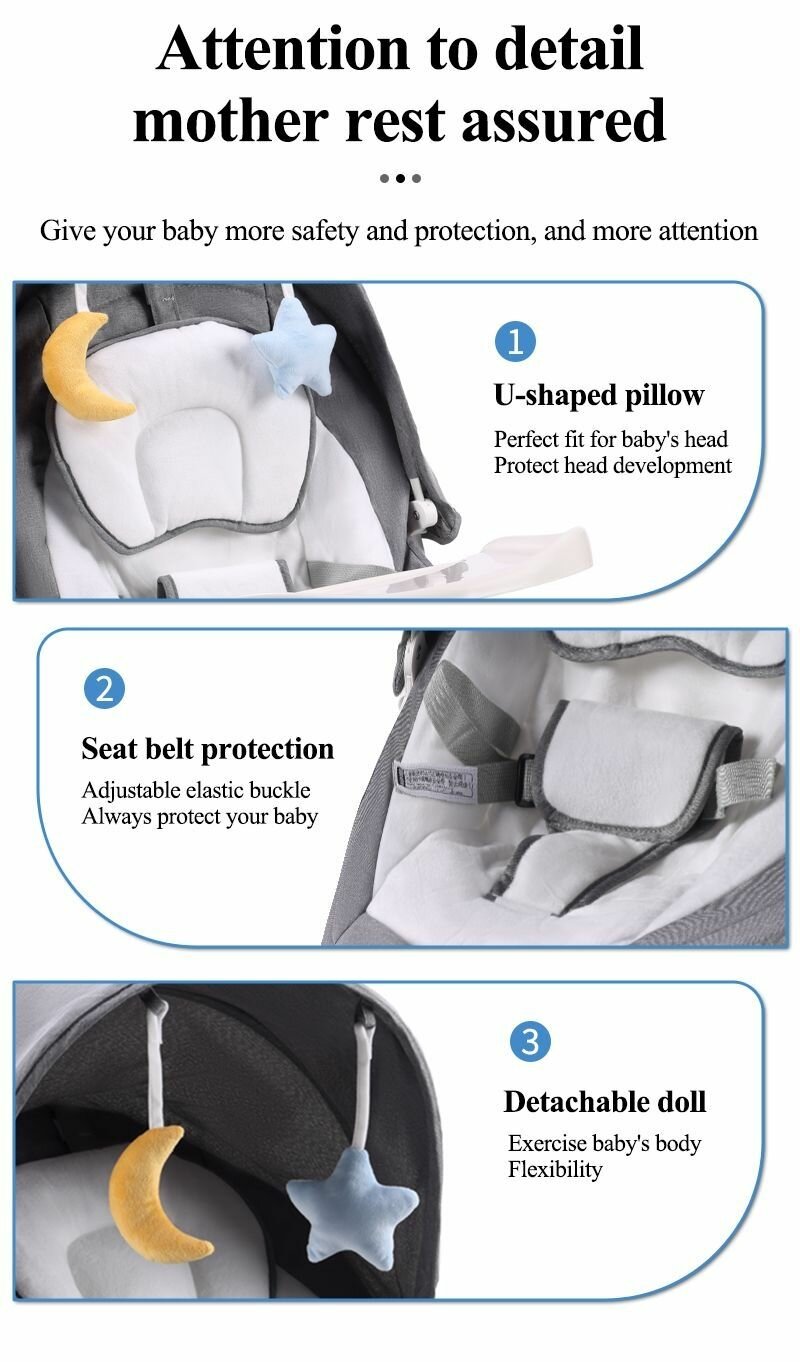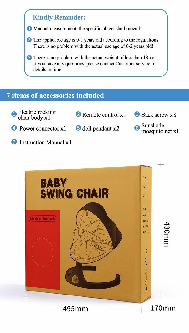 Электрокачели для новорожденных с ДУ и bluetooth до 12 кг, 3-ступенчатая регулировка спинки синий интересное: