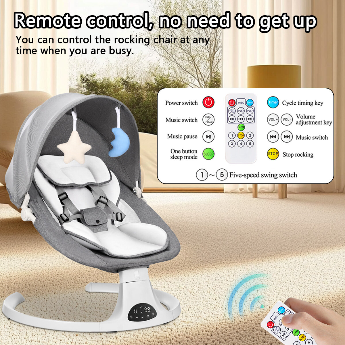 Купить Электрокачели для новорожденного кресло качалка новогодние подарки, для малыша до 12 кг, с пультом управления, серый