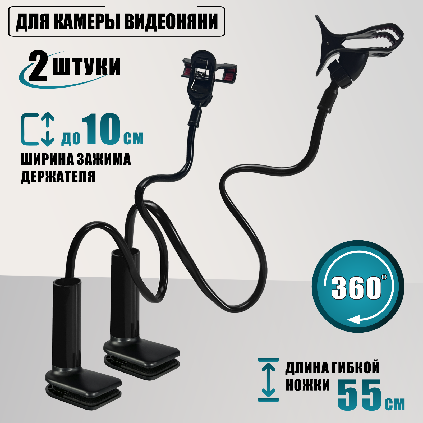 Купить Крепление для камеры видеоняни на гибком длинном держателе, цвет черный, 2 шт