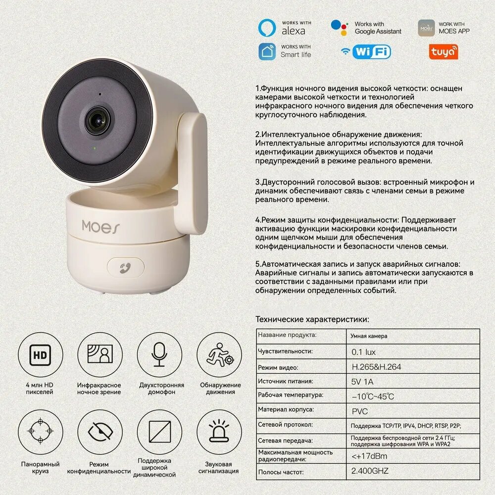 Ниже Вы можете прочитать отзывы на Tuya WiFi Smart Home Крытая интеллектуальная камера безопасности инфракрасного ночного видения Спортивный монитор/ 64 ГБ, ознакомится с подробными характеристиками, посмотреть интересные обзоры и фотографии на Tuya WiFi Smart Home Крытая интеллектуальная камера безопасности инфракрасного ночного видения Спортивный монитор/ 64 ГБ.