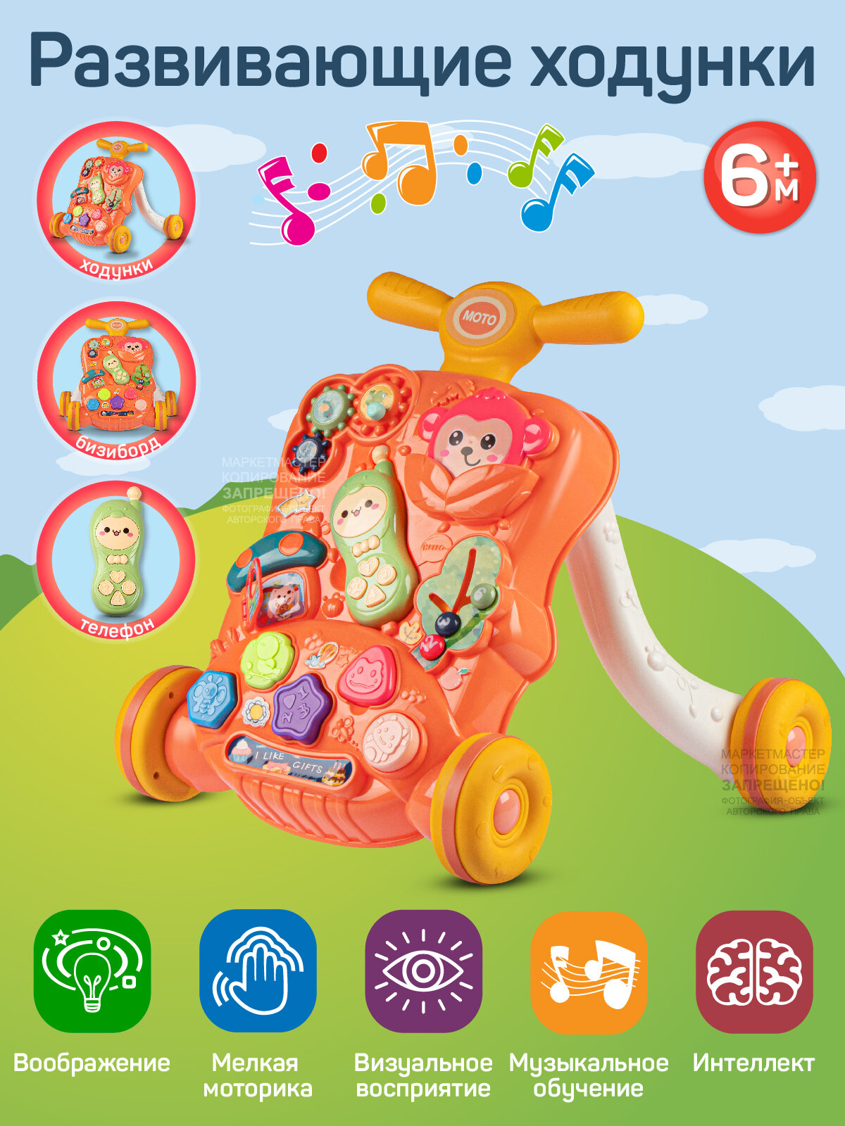 Купить Развивающие музыкальные ходунки, каталка, телефончик/сортер/элементы бизиборда, свет, звук, JB0334306