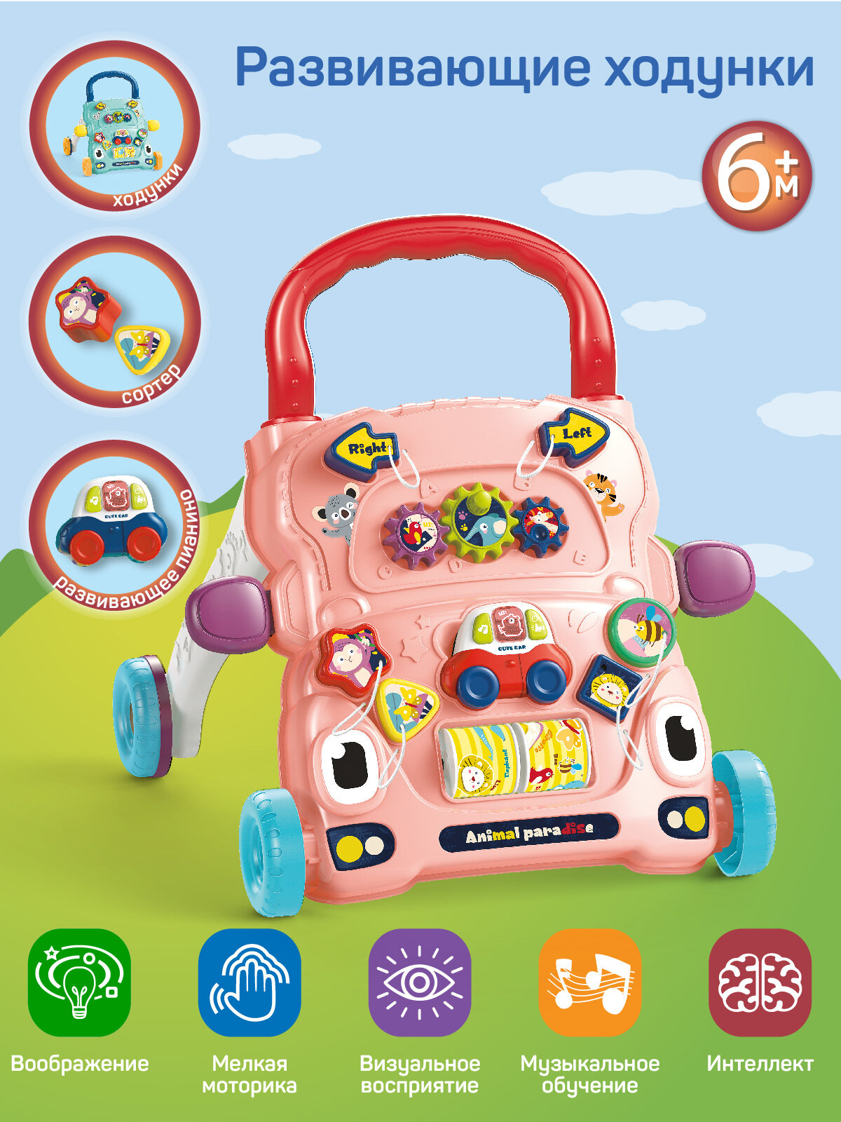 Купить Развивающие музыкальные ходунки, каталка, пианино/сортер/элементы бизиборда, свет, звук, JB0334101