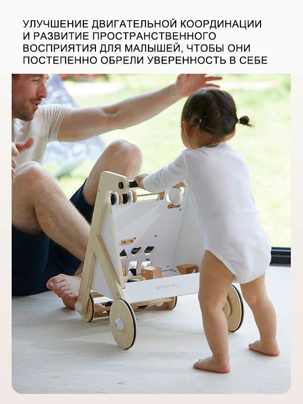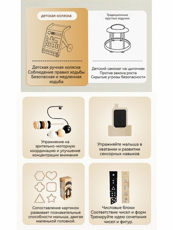 Ходунки, дерево, развивающие, с игровой панелью, для детей от 6 мес, до 20кг интересное: