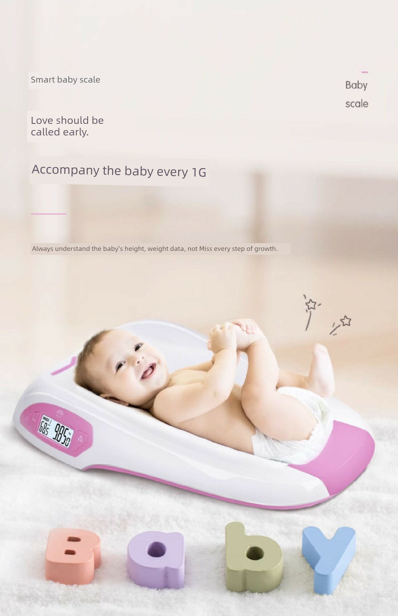 Купить Умные детские Bluetooth весы с измерением роста, розовые