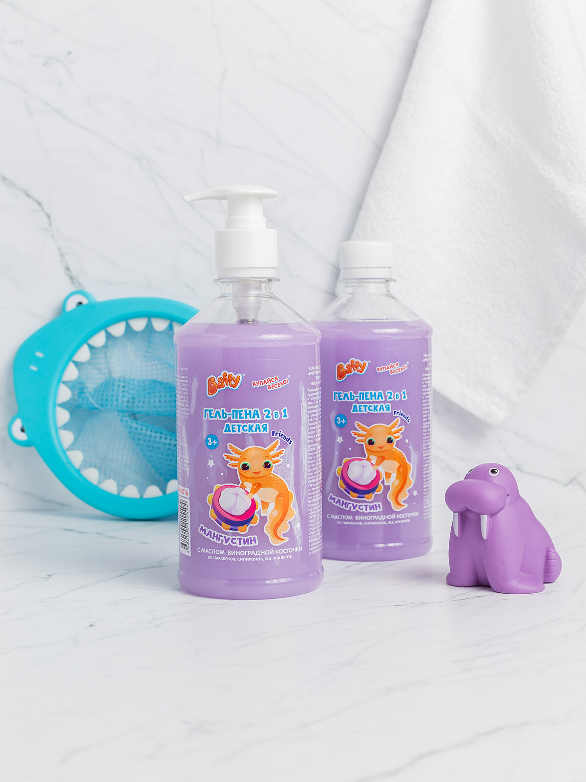 Гель-пена Baffy "Мангустин", детская, 2шт. для всех типов кожи, для тела и ванны, 500мл+500мл. интересное: