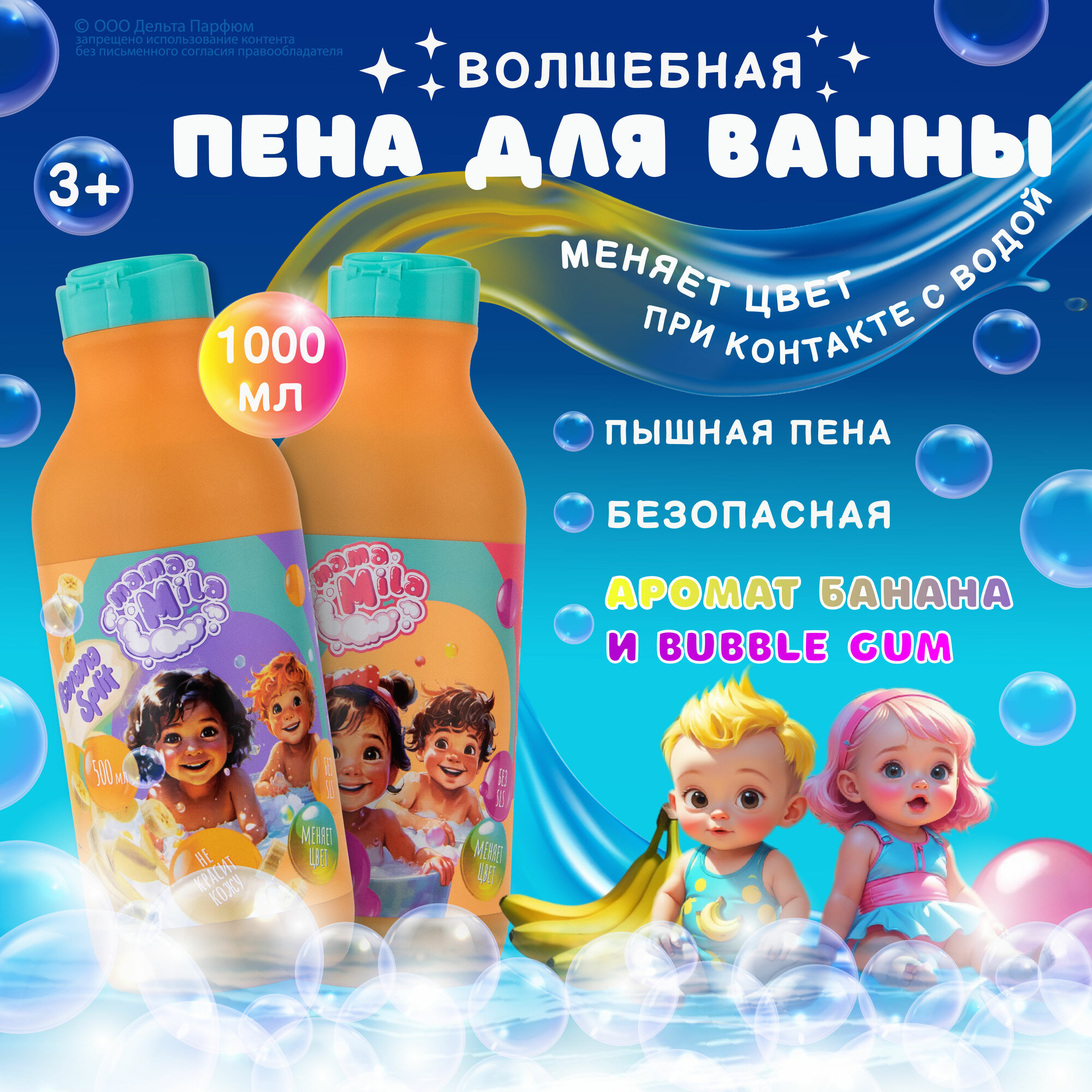 Пена для ванн детская меняющая цвет для купания детей Mama Mila банан + жвачка (bubble gum), 2 шт, 1000 мл интересное:
