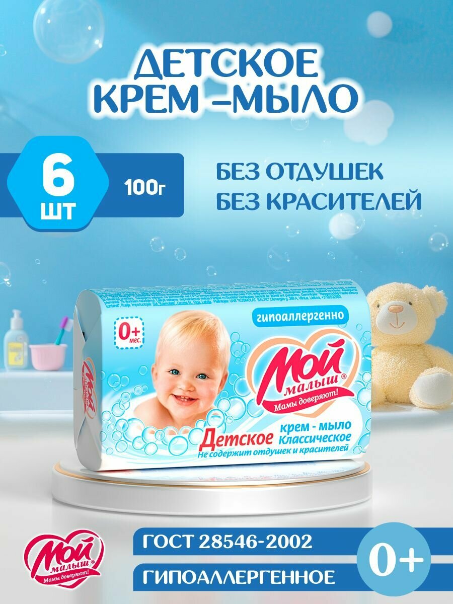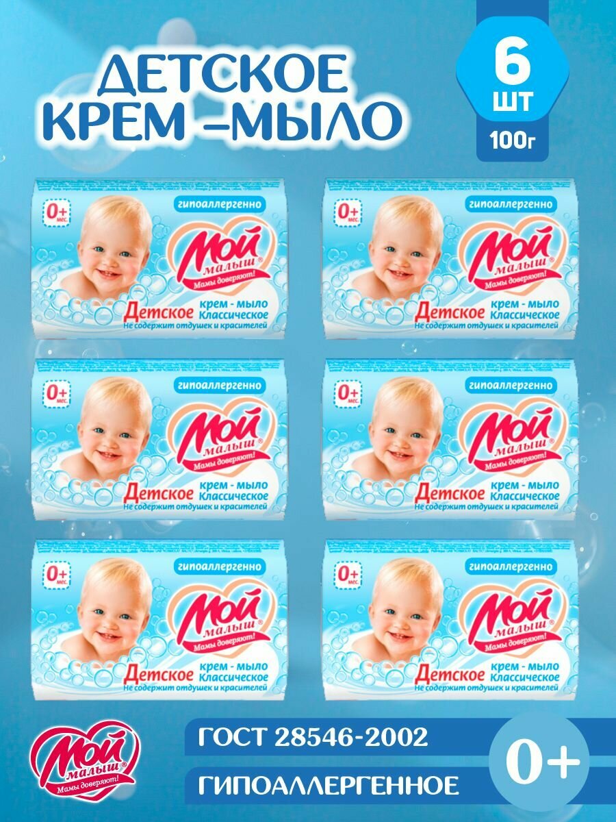 Купить Мыло Детское классическое Мой малыш набор 6 штук по 100г от НМЖК гипоаллергенное