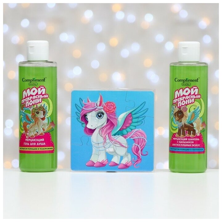 Купить Набор Compliment Kids «Мой прекрасный пони»: гель для душа, 200 мл + шампунь с бальзамом, 200 мл + пазлы