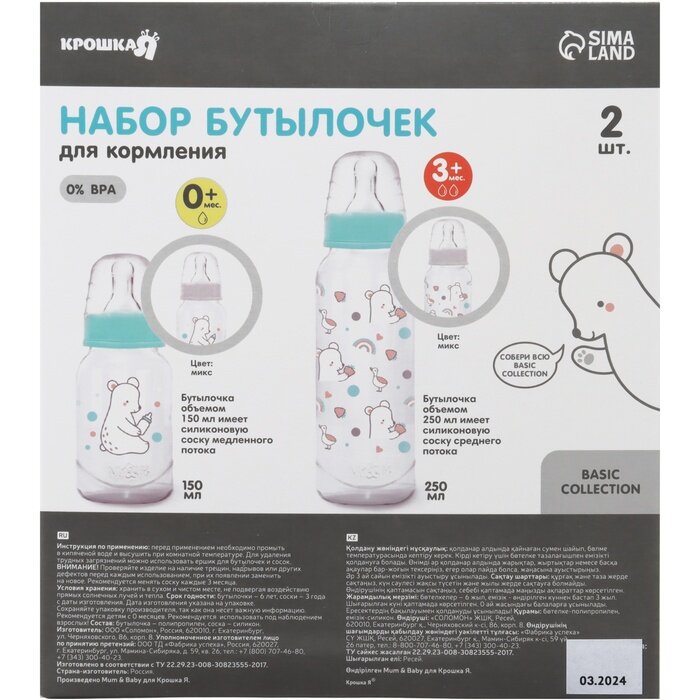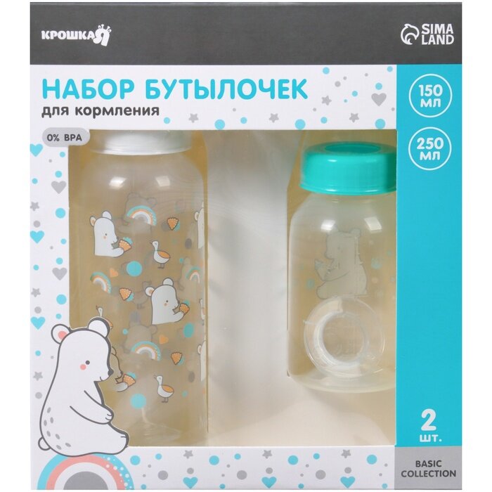Набор бутылочек для кормления «Медвежонок» 150 и 250 мл, серия Basic, прямые, микс, 9900496 интересное: