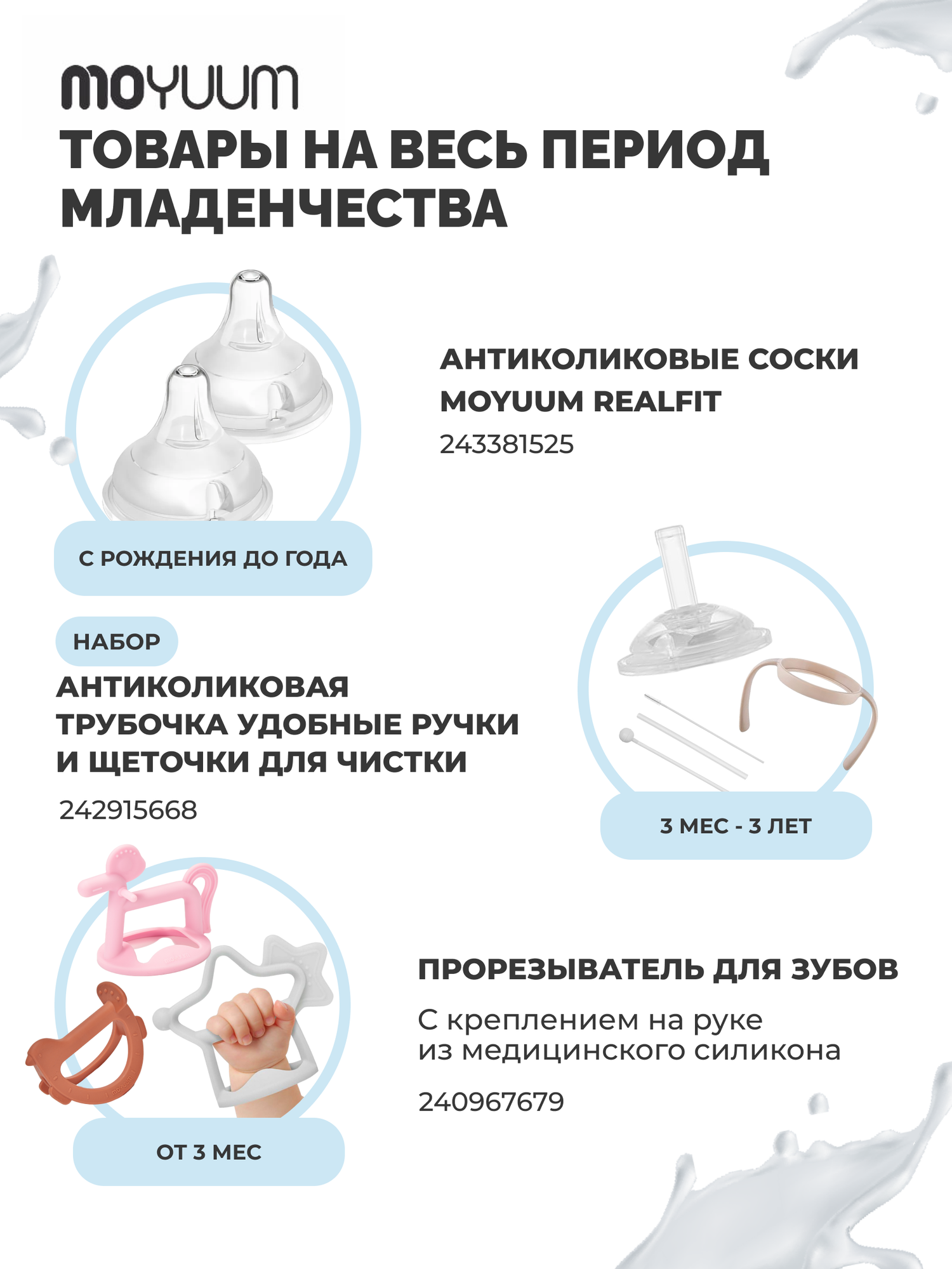 СохранитьАнтиколиковая бутылочка детская Moyuum "Базовая" для новорожденных,0+ мес. силиконовая соска, 170мл интересное: